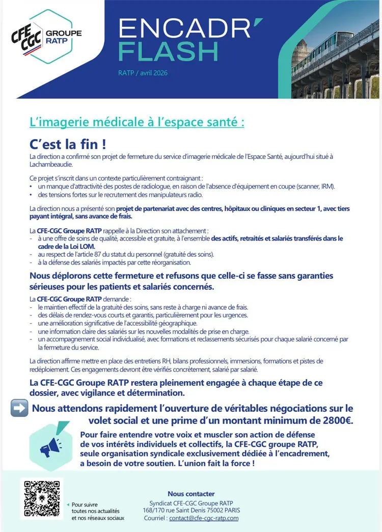 Nous avons le plaisir de vous informer du lancement de la chaîne WhatsApp CFE-CGC Groupe RATP.