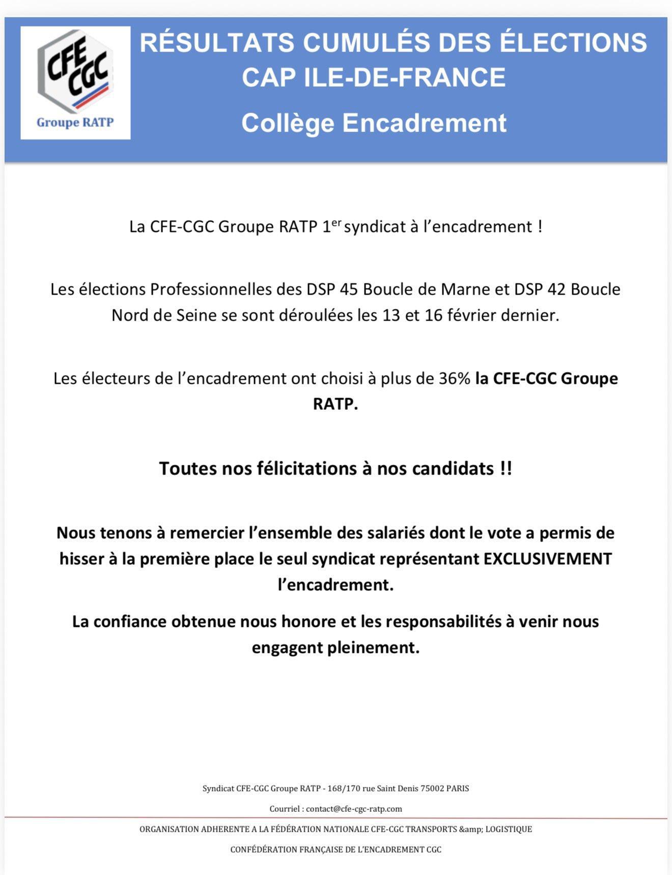 ÉLECTIONS PROFESSIONNELLES – RATP Cap Île-de-France